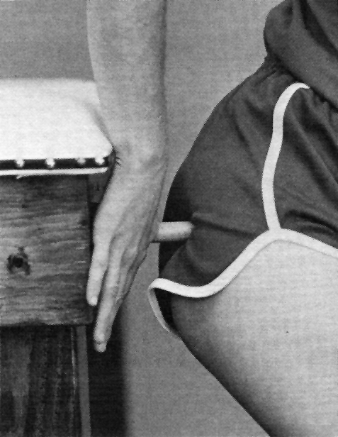 - Have your friend with the sciatica lie on the table, bed or floor. Note: If YOU are the one with the sciatica, place a wooden spoon or something similar against the wall and back into it. A Sharpie® pen works, as does the end of a broomstick.