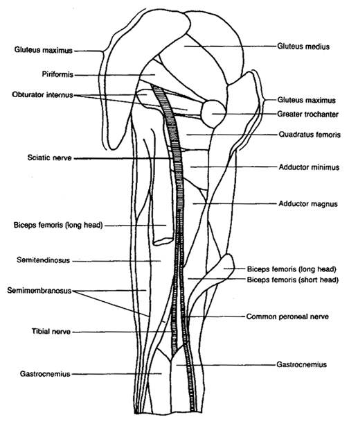 Legend would tell you that the sciatic nerve is being frayed or pinched as it exits the spine. If multiple expensive tests show no problem with the spine, what then? Most often it is being squeezed as it passes through the big gluteal muscles located just under the back pocket of your jeans.