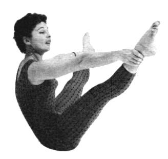 Begin these after a week of Roll Downs. Start in the supine position with legs slightly bent. Pretend to hold a basketball in your outstretched hands. Throw the imaginary basketball across the room with all your strength as you sit up. Roll down with arms extended. Do four daily.